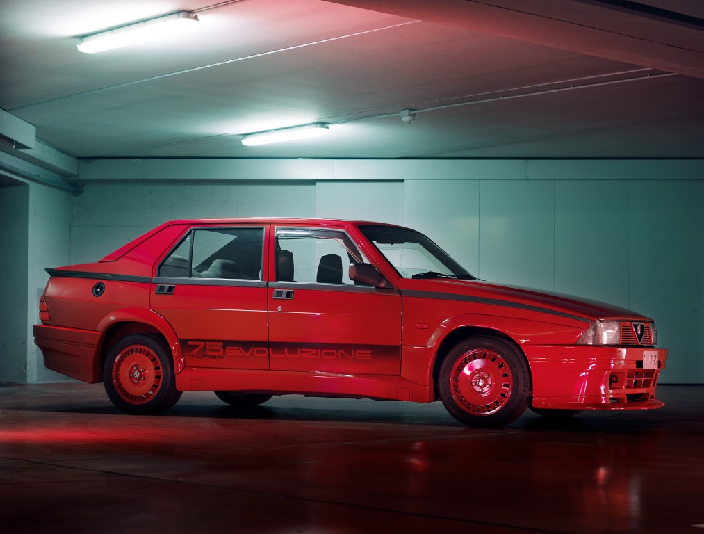 Pour soutenir la dynamique, Alfa Romeo décide courant 1986 d’envoyer la 75 se battre sur les circuits européens. Mais la version de compétition doit être homologuée par la FIA qui exige 500 exemplaires produits. Le département « Corse » développe alors une série spéciale dans ce sens, et voit naître la 75 Turbo Evoluzione.