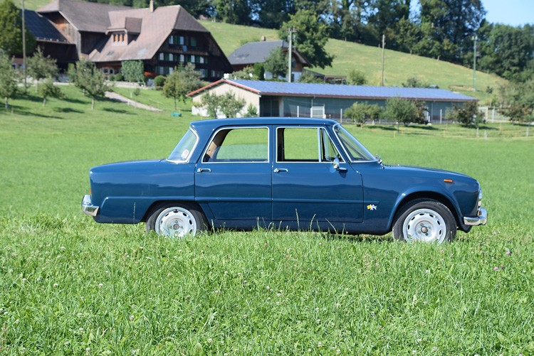 La Giulia 1300 a marqué l'entrée de la Giulia dans la catégorie des 1,3 litre, alors bondée, avec une finition et un équipement simplifiés. Introduite le 11 mai 1964 à l'Autodromo Nazionale Monza et produite jusqu'en 1971, en conduite à gauche seulement, la Giulia 1300 fut d'abord vendue en même temps que la Giulietta TI, la dernière des Giulietta de la série 101, dans sa dernière année de production, légèrement meilleur marché. En fait, la Giulia utilisait un moteur à deux cames dérivé des Giulietta TI. Equipé d'un seul carburateur Solex 32 PAIA 7 à double arbre à cames en tête, ce quatre cylindres de 1 290 cm3 modernisé a produit 78 ch (57 kW ; 77 ch) ou 89 ch à 6 000 tr/mn. La vitesse maximale était de 155 km/h (96 mi/h). Une boîte à quatre vitesses avec passage au sol en série ; la 1300 restera le seul modèle Giulia non équipé de cinq rapports de boîte. Le freinage se faisait par disques à toutes les roues, d'abord sans servo, puis plus tard avec un servo.