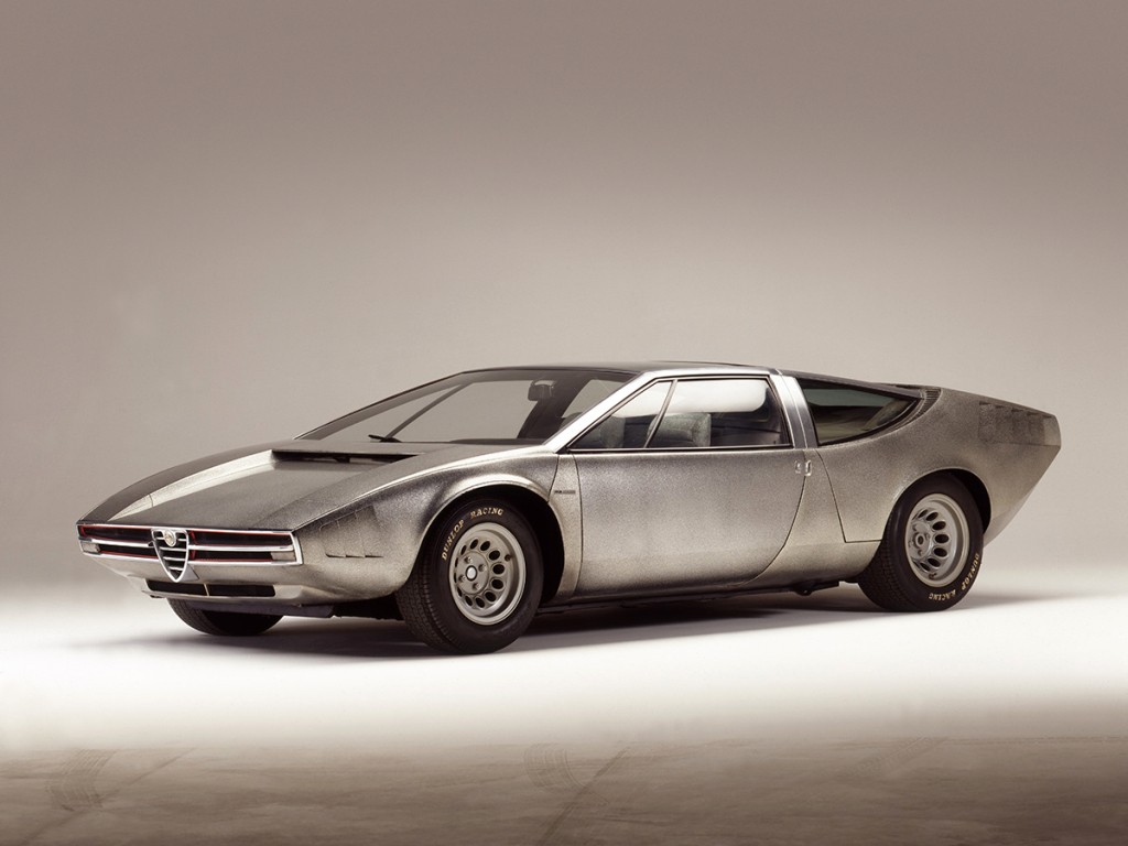 La voiture a été présentée en avant-première au Salon de l'auto sport de Monza et présentée officiellement au Salon de Turin en 1969. Il s'agit du premier modèle Alfa Romeo conçu par Giorgetto Giugiaro à la tête de sa propre carrozzeria et basé sur l'Alfa Romeo 33 Stradale version route de la Tipo 33/2. Bien qu'elle ne soit pas entrée en production, l'iguane se reflète dans les travaux ultérieurs de Giugiaro. La carrosserie de l'Iguana a été peinte en gris pailleté, tandis que la charpente du toit et les montants de la cabine ont été finis en métal brossé, un traitement Giugiaro appliqué par la suite à la DeLorean DMC. Le châssis hérité de la Stradale était en tube d'acier. Le réservoir de carburant était revêtu de caoutchouc. Le corps était un coupé en fibre de verre. La faible inclinaison du nez entre les parties surélevées des roues et la profondeur du pare-brise sera revisitée sur la Porsche Tapiro et la Maserati Bora, tandis que la définition des éléments arrière apparaîtra également dans d'autres voitures du style de Giugiaro, notamment l'Alfetta GT.