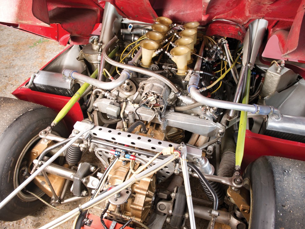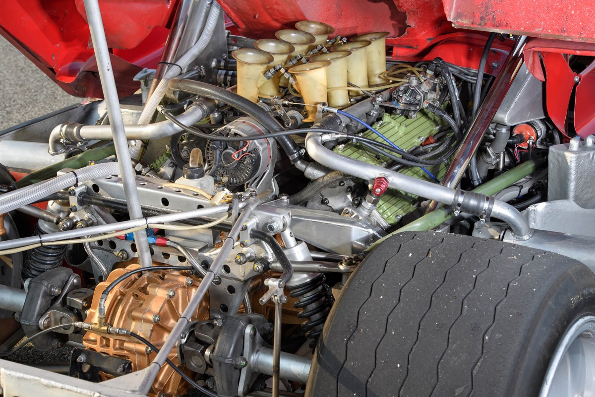 Le moteur de la Tipo 33/TT/3 est une version améliorée de celui de la Tipo 33/3, avec une puissance impressionnante de 440 ch à 9 800 tr/min. Grâce à ses culasses redessinées, ce moteur V8 à 36 soupapes et quadri-cames produisait la même puissance que le 12 cylindres de Ferrari, beaucoup plus lourd !