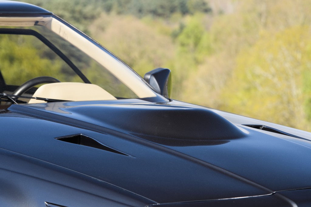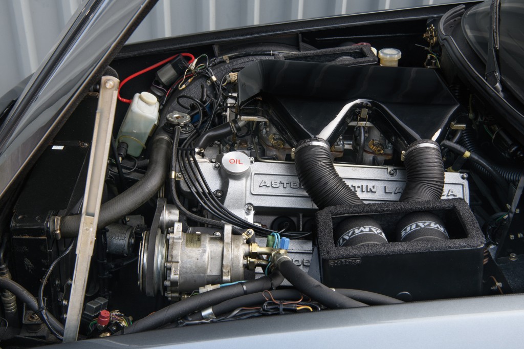 Il est alimenté par 4 carburateurs Weber à double starter, dont l’envergure nécessitait de modifier la conception du capot. Bien qu’un capot plat ait été conçu avec un système d’injection de carburant du moteur V8, cela n’aurait pas permis d’atteindre la vitesse de 300 km/h prévue. Pour ne pas impacter les performances de la voiture, seul le renflement du capot était envisageable. Ce détail stylistique ayant d’ailleurs fait polémique, il n’a pas été un franc succès auprès des clients.