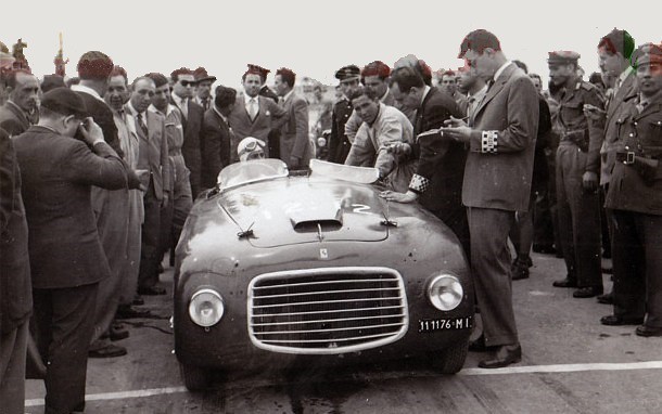 La barchetta, châssis 001S, a participé à de nombreuses courses entre 1947 et 1951, comme les Mille Miglia, Giro d'Italia et la Targa Florio. Elle remporta la victoire de la Targa Florio en 1948 aux mains de Clemente Biondetti et du Prince Igor Troubetskoy, offrant ainsi la première victoire de Ferrari sur la mythique épreuve.