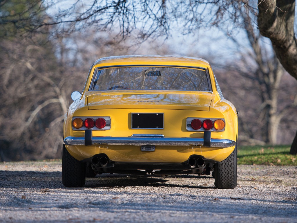 L’habitacle, entouré de cinq vitres, était plus long que celui de sa devancière, la 330 GT 2+2. La lunette arrière adoptait une pente plus importante et moins accentuée, qui rejoignait un coffre presque plat se terminant par une poupe de type Kamm. Le panneau arrière disposait de deux blocs de trois feux arrière circulaires montés dans un cadre rectangulaire chromé au-dessous duquel se trouvait un pare-chocs, lui aussi chromé, courant sur toute la longueur du véhicule.