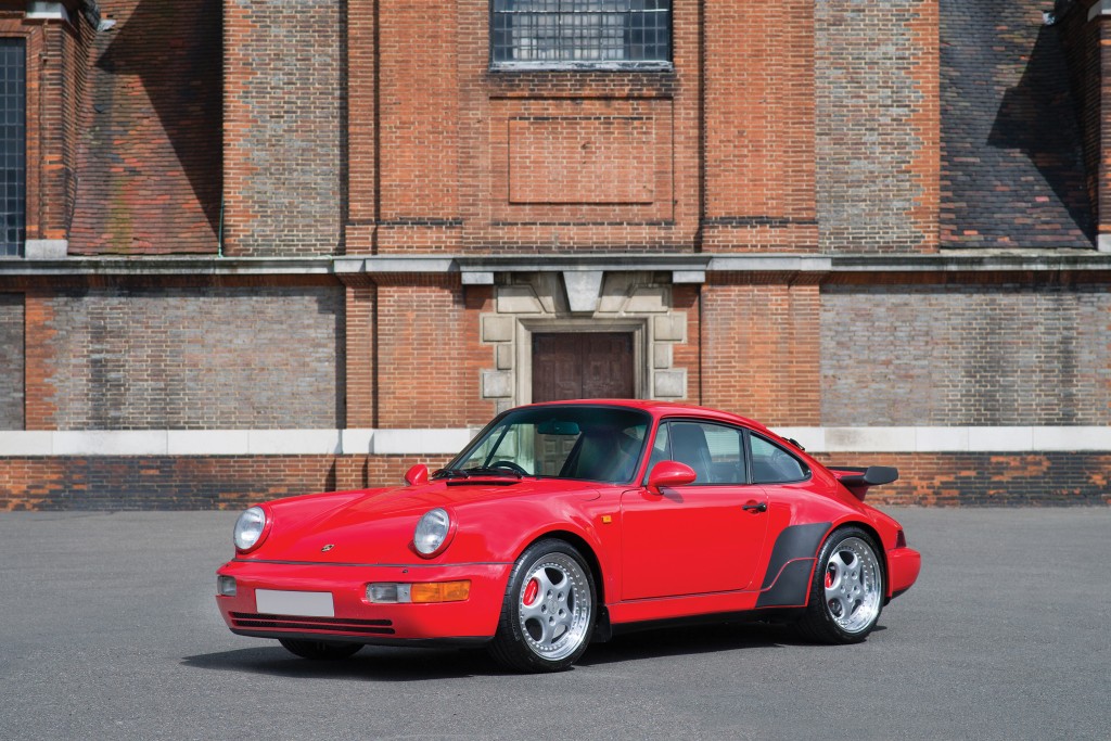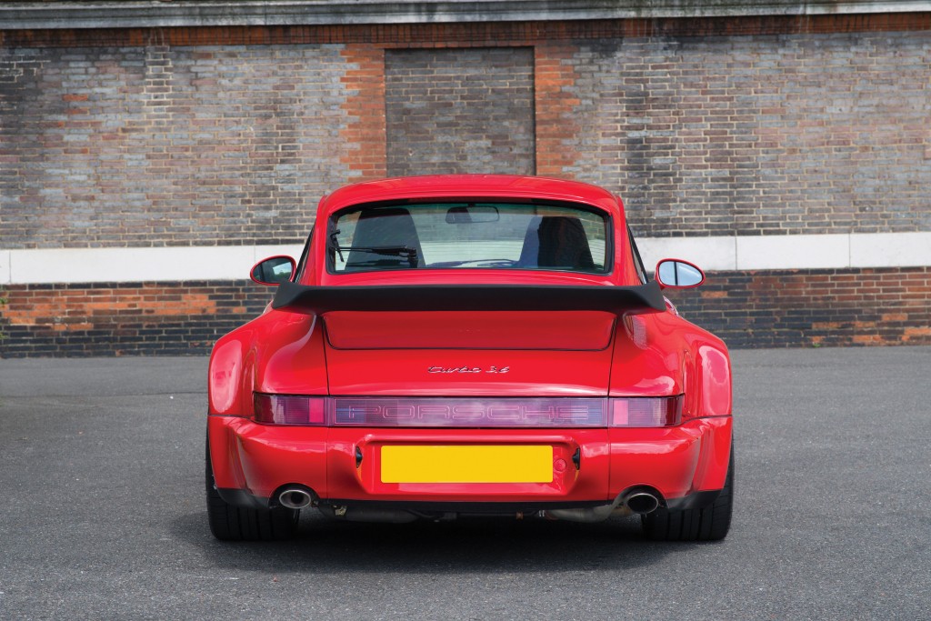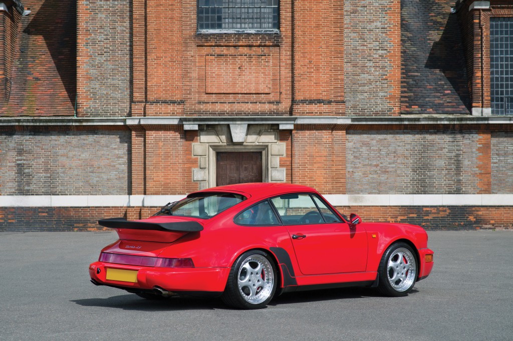 La nouvelle 964 Turbo (ou 965) se distingue visuellement de la 3.3 grâce à ses jantes de 18" en 3 parties et des étriers de freins rouges. Légèrement moins haut, le rebord de l'aileron permet de gagner un peu en vitesse de pointe. Juste en-dessous, le logo spécifique "Turbo 3.6" achève la signature de ce modèle. A l'intérieur, seul le tachymètre gradué jusqu'à 320 km/h permet de savoir à bord de quelle version on se trouve, l'équipement étant ici aussi, très complet. Porsche, avec ce modèle, va redonner à la 965 un second souffle et la bestialité tant appréciée des 930. Pour cela, la Turbo 3.6 adopte la base mécanique des nouvelles Carrera RS.