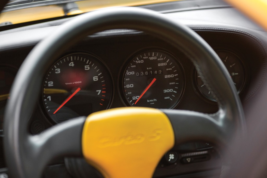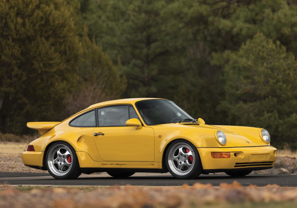 La Turbo S "Leichtbau" (construction légère en allemand) est à la turbo ce que la Carrera RS est à la Carrera 2. Elle offre le meilleur niveau de performances de la gamme 911, et vue sa faible production, elle deviendra rapidement un vrai mythe roulant. Basée sur la 964 Turbo 3.3L légèrement abaissée, la 964 Turbo S se remarque à ses jantes 18" polies, ses prises d'air dans les ailes arrières, des écopes pour les freins dans le bouclier avant à la place des anti-brouillards et un aileron plus fin, côté intérieur, c'est une RS donc dépouillé au maximum, strict 2 places sans vitres electriques et sangles en guise de poignée de porte, mais ce modèle c'est surtout un moteur poussé et un châssis affûté !