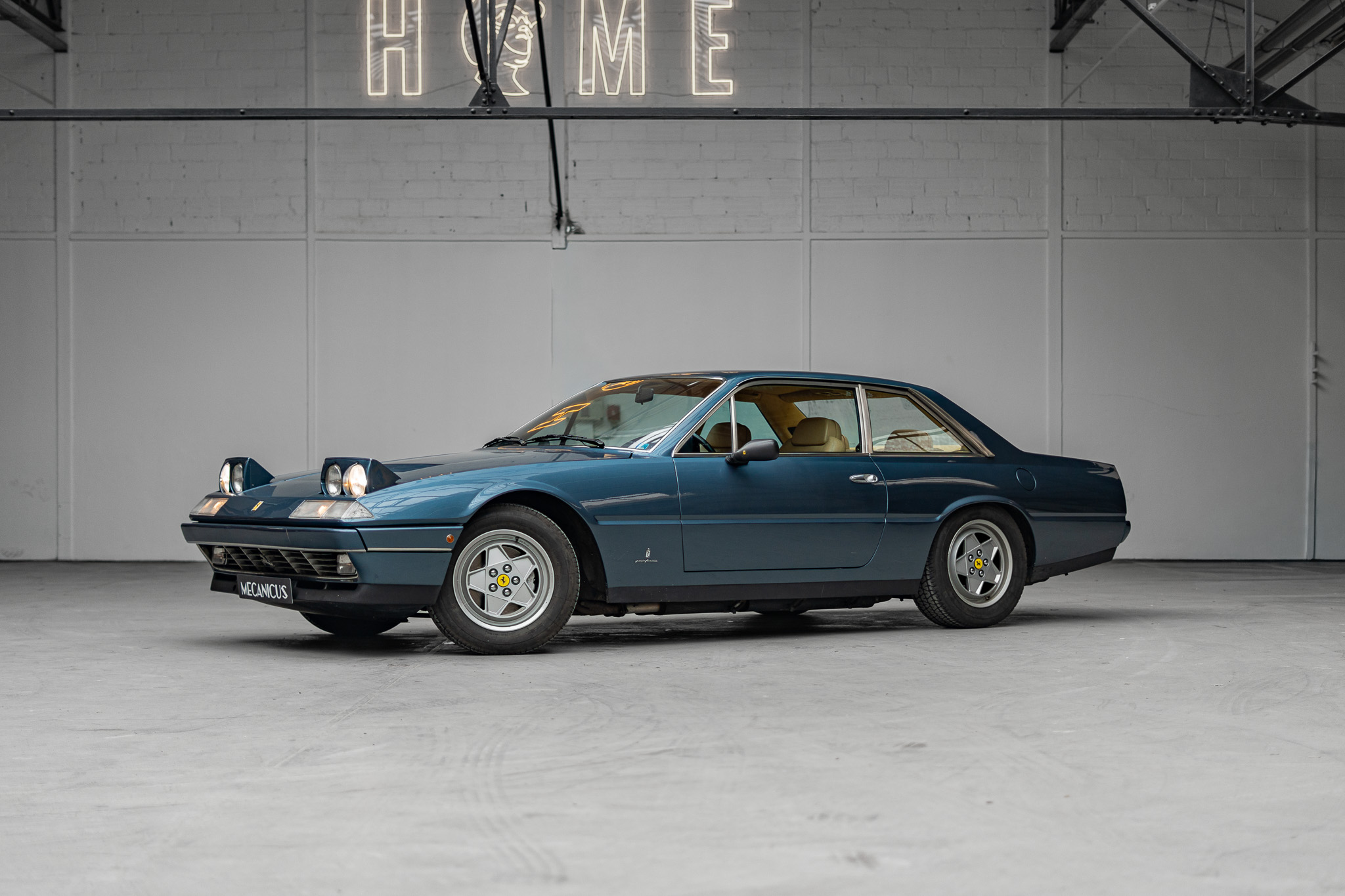 Notre Ferrari 412i que nous vous proposons est un exemplaire emblématique de la marque italienne, équipée du V12 avant de 4,9 litres et de l’irremplaçable boîte mécanique. Celle-ci est présentée dans une configuration Blu Medio Met associée à un intérieur en cuir beige.