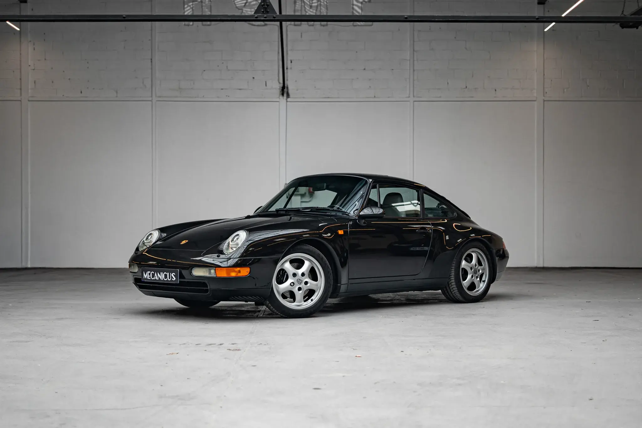 Notre Porsche 993 Carrera 2 est un exemplaire de 1995 d’origine allemande, livré neuf par le Centre Porsche Kaiserslautern le 3 mai 1995. Cette Carrera 2 Coupé, équipée de la boîte mécanique, a été configurée dans l’élégante teinte Schwarzmetallic (code L744), associée à un intérieur en cuir gris marbre (code PJ).
